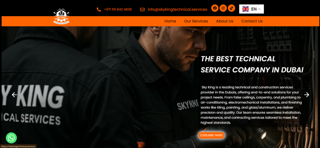 Developed a sleek and professional website for Sky King Technical Services, a Dubai-based company. Integrated multi-language support to make the platform accessible for diverse users.